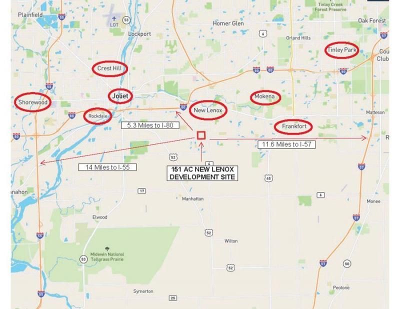 151 Acres in New Lenox, one of the fastest growing Southwest suburbs of Chicago. Excellent New Lenox grade schools and Lincoln-way high school. Both considered some of the best in the state. Frontage on Laraway road, just west of Cedar. Zoned agriculture, but comprehensive plan calls for mixed use residential allowing for higher density. Two Metra stations, Laraway road station is just half a mile east. The main station is at Cedar and Rt. 30 in New Lenox, about 2.6 miles north. Easy access to I-80, I-55, I-355 and I-57. Excellent shopping district along Rt. 30.