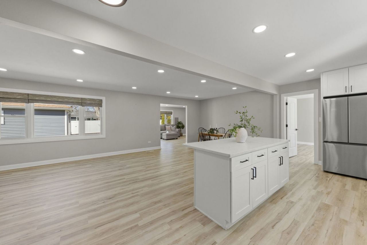 An updated 4 bedroom ranch in the heart of north Wheaton! This beautifully updated home is light, bright and turnkey and offers 1960 square feet of functional living space. Set on a spacious corner lot with a fully fenced backyard, it offers the perfect blend of comfort, function, and design. Inside, the open-concept layout is filled with natural light and anchored by a stunning, fully renovated kitchen featuring sleek cabinetry, updated countertops, and high-end appliances. Brand new LVP flooring (2024) runs throughout the main living areas, paired with fresh carpet in the bedrooms for added warmth and comfort. Both bathrooms have been fully remodeled (2023) with a crisp, spa-like feel. A newly added gas fireplace (2024) brings a cozy focal point to the family room, while major mechanical updates including a newer HVAC system offer peace of mind. Additional updates include but aren't limited to - new garage siding (2024), asphalt driveway (2024), gutters on garage (2024). Top rated Wheaton schools. Close to parks, schools and downtown Wheaton shops/restaurants!