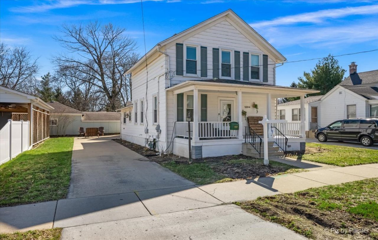 An absolutely perfect starter home within walking distance to downtown Batavia! Step up onto the large front porch and see yourself swinging away your summer days and nights. There are beautiful original hardwood floors and an open dramatic staircase that greet you when you step through the charming antique door into the large front room. Next, a separate formal dining room with built-in shelves and a large bay window. The kitchen is gorgeous, completely updated with white maple cabinets, SS appliances, quartz countertops and porcelain tile flooring, plus all SS appliances, which stay. There is a first floor laundry room with upper storage cabinets and an updated 1/2 bath that completes the first floor. Upstairs are 2 generous bedrooms (primary is 26x12!) and a peaceful, updated bathroom with quartz vanity top, new fixtures and a romantic arch above the tub. The basement has been recently painted with hydro-static paint to ensure a clean place for storage. The backyard is very limited, so if you don't want to spend your summers mowing, this is a great home! Other updates include the roof in 2019, furnace and CA in 2019, new electric, hot water heater in 2019. Hurry, this home won't last!