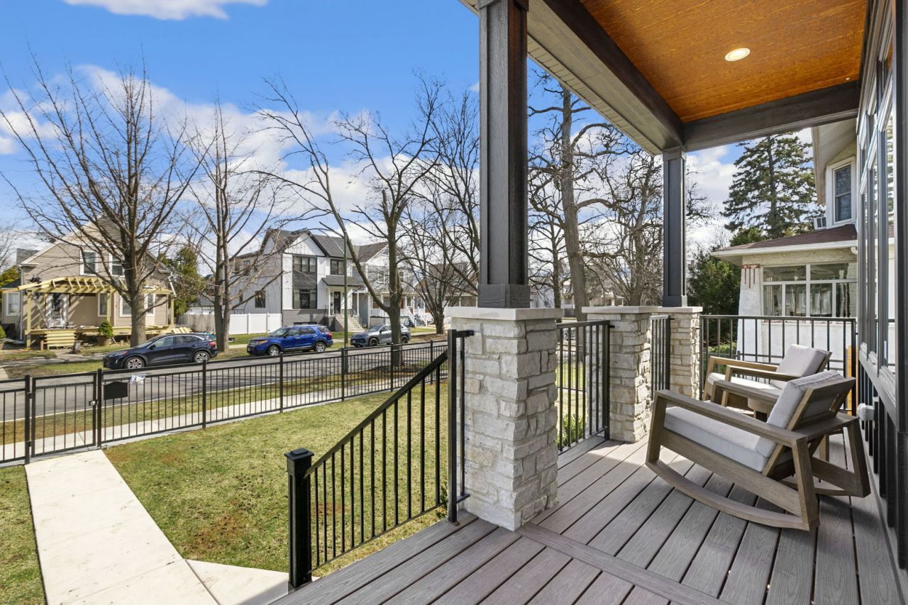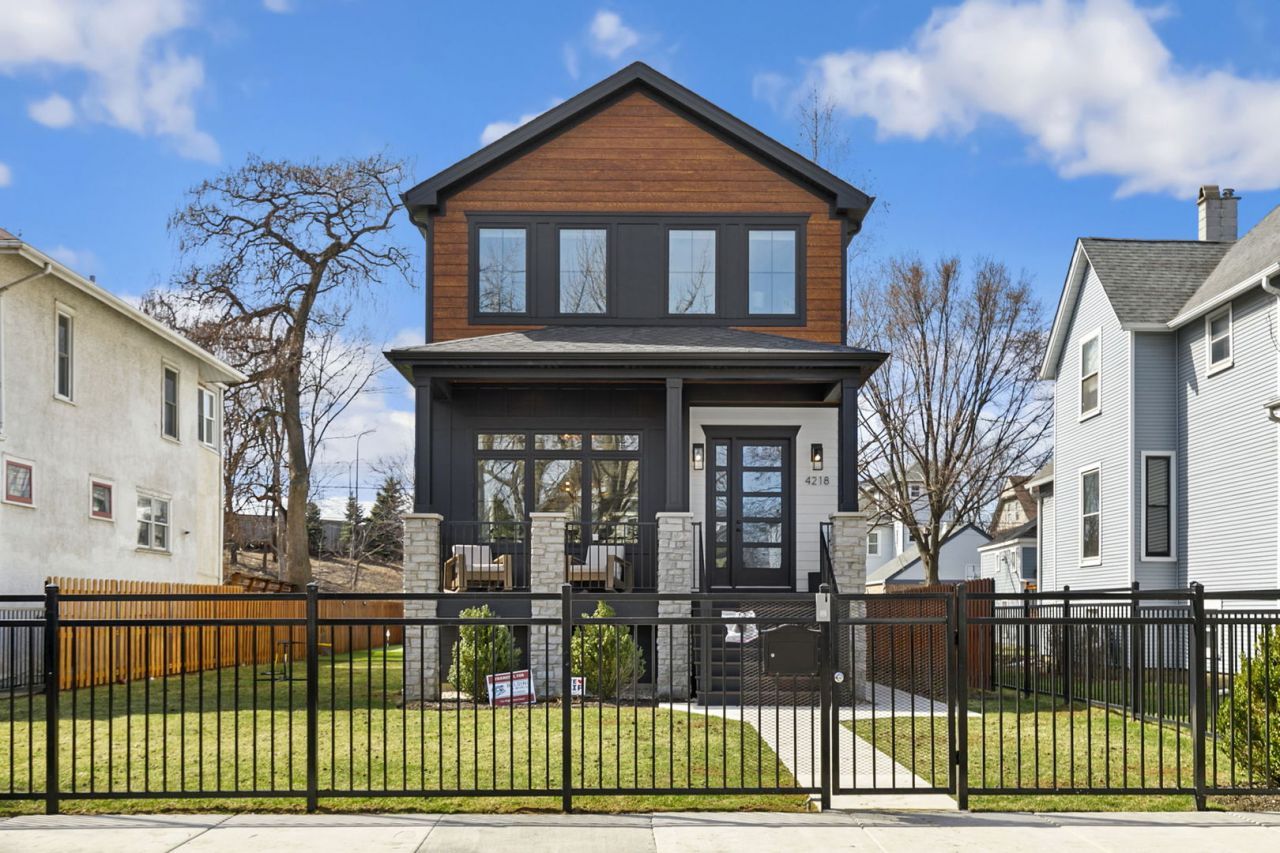 Stunning 2023 newer construction single family home on an oversized 50 x 144 double lot in the heart of Old Irving Park. This extra wide floor plan offers 4 bedrooms and 2 full bathrooms on the upper level, plus a 5th bedroom or office in the finished lower level, delivering a rare amount of space and flexibility for the area. The striking modern farmhouse exterior blends white Hardie siding, wood accents, black board and batten, and stone details, all anchored by a welcoming covered front porch. Inside, a bright and open layout features a combined living and dining space with custom built-ins and a gas fireplace, flowing seamlessly into a chef's kitchen designed for both everyday living and entertaining. Highlights include custom cabinetry, JennAir appliances, a large island with seating, walk-in pantry, and space for a breakfast table. The adjoining sun-filled family room offers a second fireplace and direct access to the mudroom and backyard. Built-in Sonos speakers are wired and installed throughout the home for seamless sound. Upstairs, the spacious primary suite features dual walk-in closets and a beautifully appointed bath with heated floors, soaking tub, frameless glass shower, and double vanity. Three additional bedrooms, a full bath with dual sinks and heated flooring, and a convenient laundry room complete the level. The finished lower level offers impressive ceiling height and natural light, with a large recreation room, wet bar with beverage fridge, 5th bedroom or office, full bath, second laundry hookup, and heated flooring. What truly sets this home apart is the fully built-out outdoor space, completed in 2025. The oversized, gated yard features a custom heated and lit Pratic Italian retractable pergola, deck and patio, and a full outdoor kitchen with custom cabinetry, Blackstone flattop grill, Komodo Joe smoker, and beverage cooler. A 4-hole putting green with chipping area adds a unique touch you rarely see in the city. A detached three-car garage completes the package. Additional features include custom closets and built-ins throughout, skylights, speaker wiring, home security system, and multiple entertaining spaces with two bar areas. All of this in a prime Old Irving location with easy access to 90/94, the Blue Line, Metra, restaurants, shopping, and top-rated Belding Elementary and Disney II Magnet. Opportunities like this rarely come to market in Old Irving Park.