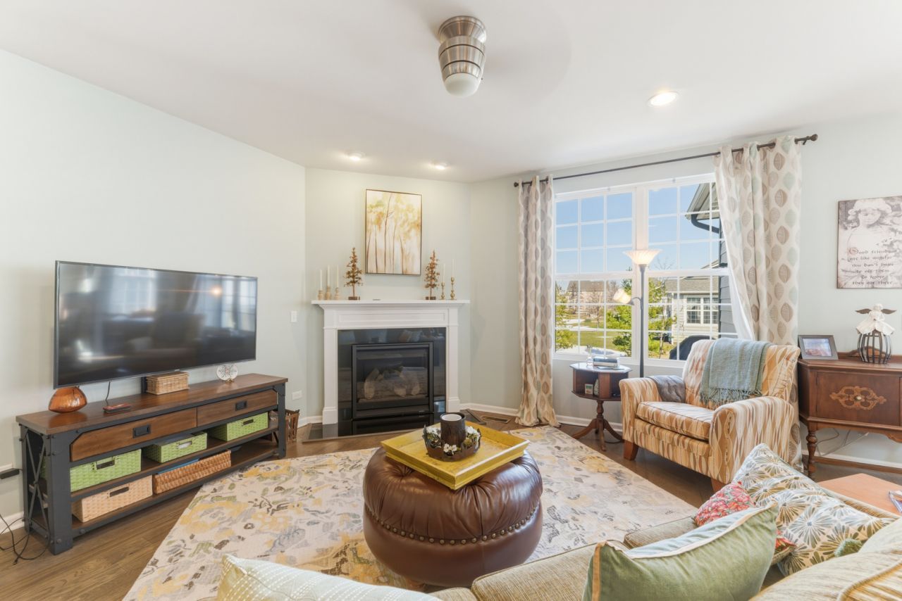 Experience the ease of newer construction without the wait. This beautifully maintained ranch offers modern design, quality craftsmanship, and a setting that feels quietly tucked away from it all. From the moment you step inside, the home's bright, open layout welcomes you with 9-foot ceilings throughout and wide plank hardwood flooring that enhances the sense of space and light across the main living areas. The thoughtfully designed kitchen is the heart of the home, featuring stainless steel appliances, Quartz countertops, 42-inch cabinetry, a generous island perfect for gathering, and a pantry with shelving. It flows seamlessly into the great room and dining area, creating an ideal space for both everyday living and effortless entertaining. A sun-filled sunroom provides a peaceful retreat overlooking the enlarged patio and open grassy common area, offering a serene backdrop for morning coffee or quiet evenings outdoors. The primary suite is a private sanctuary with a spacious walk-in closet and a luxurious bath designed for comfort and relaxation, complete with granite countertops. A well-appointed guest bedroom and a separate den or office offer flexibility for today's lifestyle, whether working from home, hosting visitors, or creating a quiet reading space-all conveniently located on the main level. The full unfinished basement, already roughed in for a future bathroom, offers incredible potential for expansion-whether you envision additional living space, a home gym, or a custom recreation area. Set in a truly quiet location with low association fees, yet just moments from local parks, recreation, and highly regarded schools, this home combines peaceful surroundings with everyday convenience. A rare opportunity to own a meticulously cared-for newer home with room to grow in a setting that feels both private and connected.