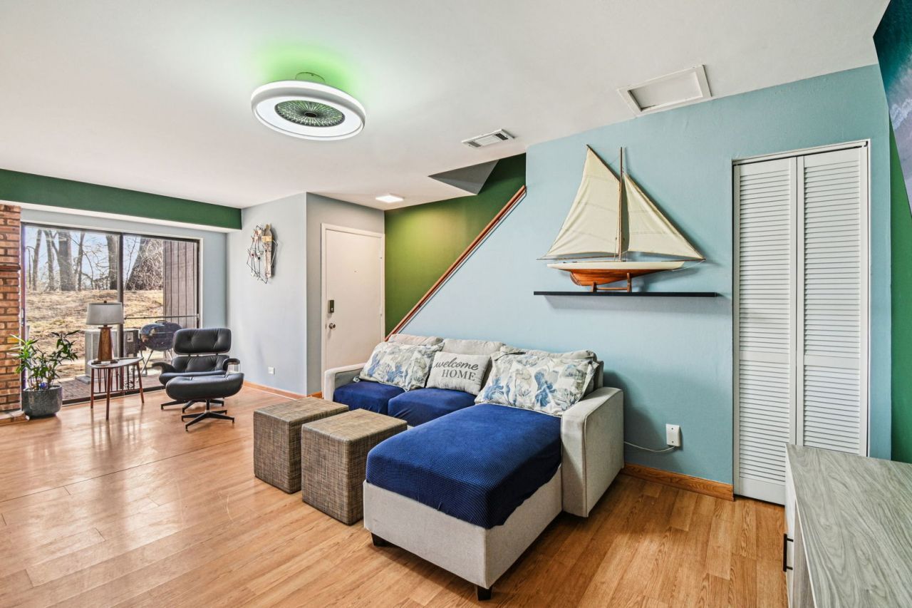 FULLY FURNISHED, TURNKEY 2 bed/1.5 bath townhome in the Woodhills Bay community, offering immediate use with no setup required. Enjoy direct access to the FOX CHAIN-O-LAKES, with Mineola Bay just across the street & boat slips available through the HOA. The main level features a bright, open living room with a wood-burning fireplace & dual glass doors leading to a private patio. The updated (2026) kitchen is positioned off the main living space & includes NEW ALL STAINLESS SAMSUNG SMART APPLIANCES, granite countertops, backsplash, sink, faucet, & garbage disposal. Additional 2026 updates include a new water heater, remodeled bathrooms, updated light fixtures, sliding barn door, & fresh interior paint throughout. Both bedrooms offer sunrise views over the lake, with the primary suite featuring private balcony access. Residents have access to a pool, beach, clubhouse, boat launch, & visitor parking, with close proximity to downtown Fox Lake. A true turnkey property with furnishings included, combining recent updates with immediate livability & lake access. Additional updates: new roof (2025), furnace & A/C (2022).