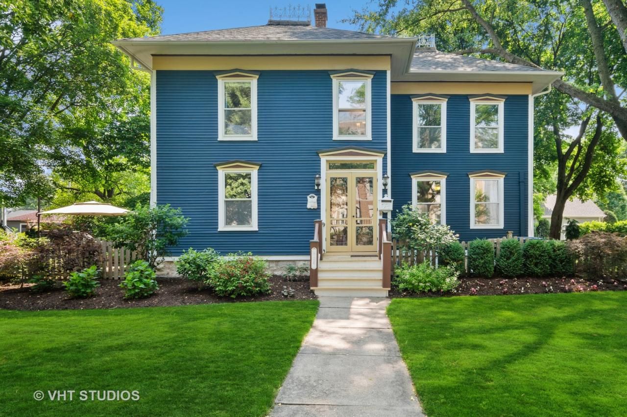 LIVE THE STORYBOOK DREAM! This Italianite charmer is situated on an oversized (.32 acre), fully fenced, beautifully landscaped lot in the heart of Naperville's historic district. It was built in 1870 by Declar Sleight and has been attentively updated and expanded over the years by only five longtime owners. Oh, if these walls could talk! Boasting almost 2800 delightful square feet of living space above grade, this home provides the perfect blend of old-world charm and modern convenience. All the rich hardwood floors, wider base moldings, picture moldings, crown moldings, arches and niches are reminiscent of easier times. Blend that with the long list of recent updates - both the pretty and the sturdy - and you have exactly what every vintage homeowner desires. The current owners oversaw an amazing renovation in 2017. One highlight of this renovation is the chef's dream kitchen which includes a La Cornue gourmet gas range, custom matching vent hood, easy-close custom cabinetry, granite counter tops and stunning 1800's Chicago street brick wall/backsplash. There's plenty of room to congregate around the 4' X 8' island with seating for 5. The kitchen flows into the dining and main living areas for easy entertaining. The back porch is both insulated and heated. With all the big windows and skylights here, it makes the perfect sunroom/flex room. The elegant first floor bedroom with ornate 1870's fireplace mantel sits adjacent to a full bath. There's a handsome first floor office, too! Upstairs, you'll find three more spacious bedrooms, a full bath, and a huge laundry room. This home's versatile layout provides several options for expansion and further personalization. For example, a third ensuite full bath could easily be added with just a few minor modifications. Also included in the 2017 renovation was full replacement of the first-floor hardwood floors; refinishing of the historic floors; replacement of several windows; new HVAC (Lennox furnace and a/c); new energy-efficient water heater; all electrical upgraded; installation of an inground automated sprinkler system; second floor laundry room remodel; and an upstairs bathroom remodel complete with Jacuzzi tub, separate shower, custom vanity and upgraded sink. Perhaps your favorite living space will be the majestic back yard and expansive permeable paver patio complete with built-in gas grill, firepit, custom water fountain feature, mature trees, and stunning year-round perennial blooms. Or maybe even the more secluded secret garden patio on the side of the house. Whether entertaining, enjoying your morning coffee, or just watching the day go by, you'll never want to leave this private sanctuary. The oversized 2-car garage, additional alley parking for up to 3 cars, and raised garden beds are a bonus. New roof 2020. Exterior paint stripped and updated 2022. The list goes on! (See a complete list of updates/timelines under Additional Information.) All this splendor is located just blocks fr